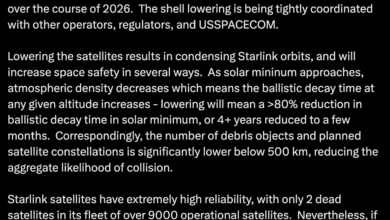 أعلنت “ستارلينك” أنها ستخفض مدارات نحو 4,400 قمر صناعي خلال هذا العام كإجراء للسلامة، وفقًا لنائب الرئيس للهندسة في الشركة…