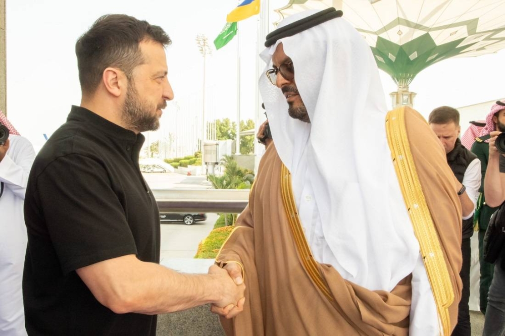وصل الرئيس الأوكراني فلوديمير زيلينسكي إلى جدة في زيارة للمملكة، حيث كان في استقباله عدد من المسؤولين بمطار الملك عبدالعزيز الدولي، بما في ذلك نائب أمير منطقة مكة المكرمة ووزير الدولة وأمين محافظة جدة. كما حضر السفير السعودي لدى أوكرانيا والسفير الأوكراني لدى المملكة. وتم تنظيم استقبال رسمي للرئيس الأوكراني في المملكة، مع تجهيز بعض السكرتيريات والمعدات الضرورية للاحتفال.