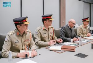 الأمير خالد بن سلمان وزير الدفاع السعودي يلتقي مع قائد الجيش الباكستاني لبحث التعاون الإستراتيجي في المجال العسكري والدفاعي. تم استعراض العلاقات التاريخية بين البلدين وبحث القضايا المشتركة. حضر اللقاء عدد من المسؤولين العسكريين السعوديين بما في ذلك نائب وزير الدفاع ورئيس هيئة الأركان العامة ومساعد وزير الدفاع ومدير عام مكتب وزير الدفاع.