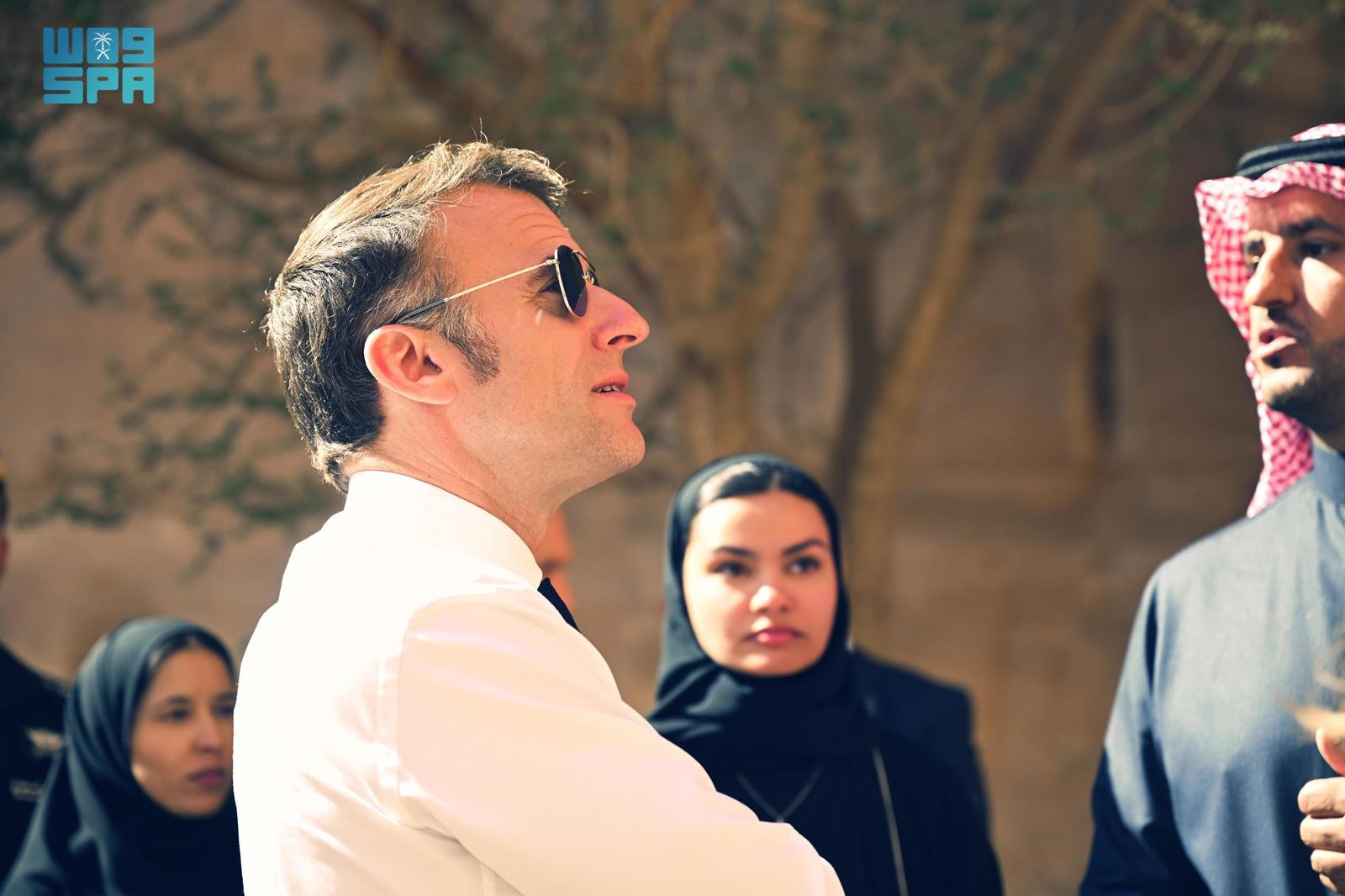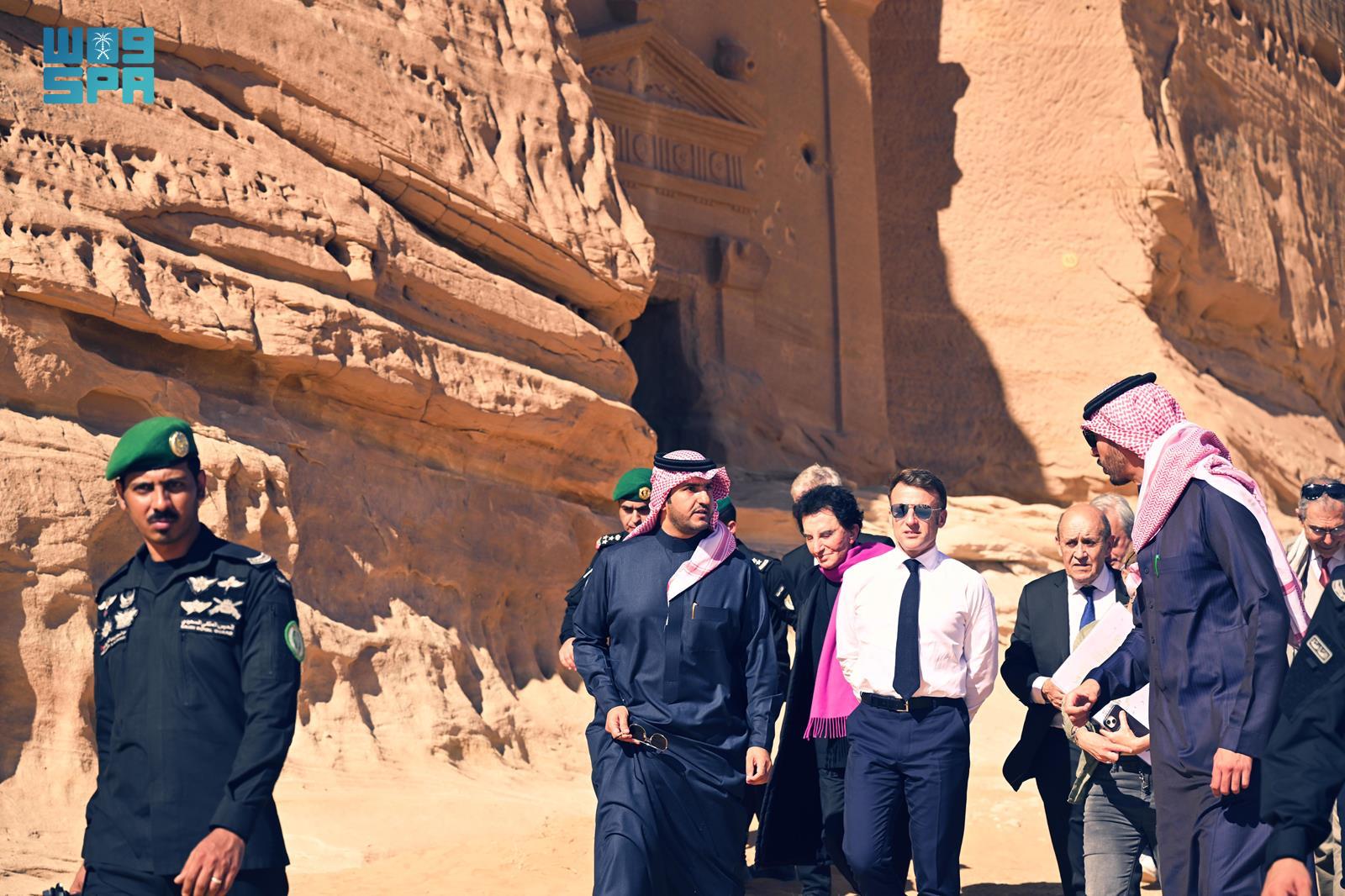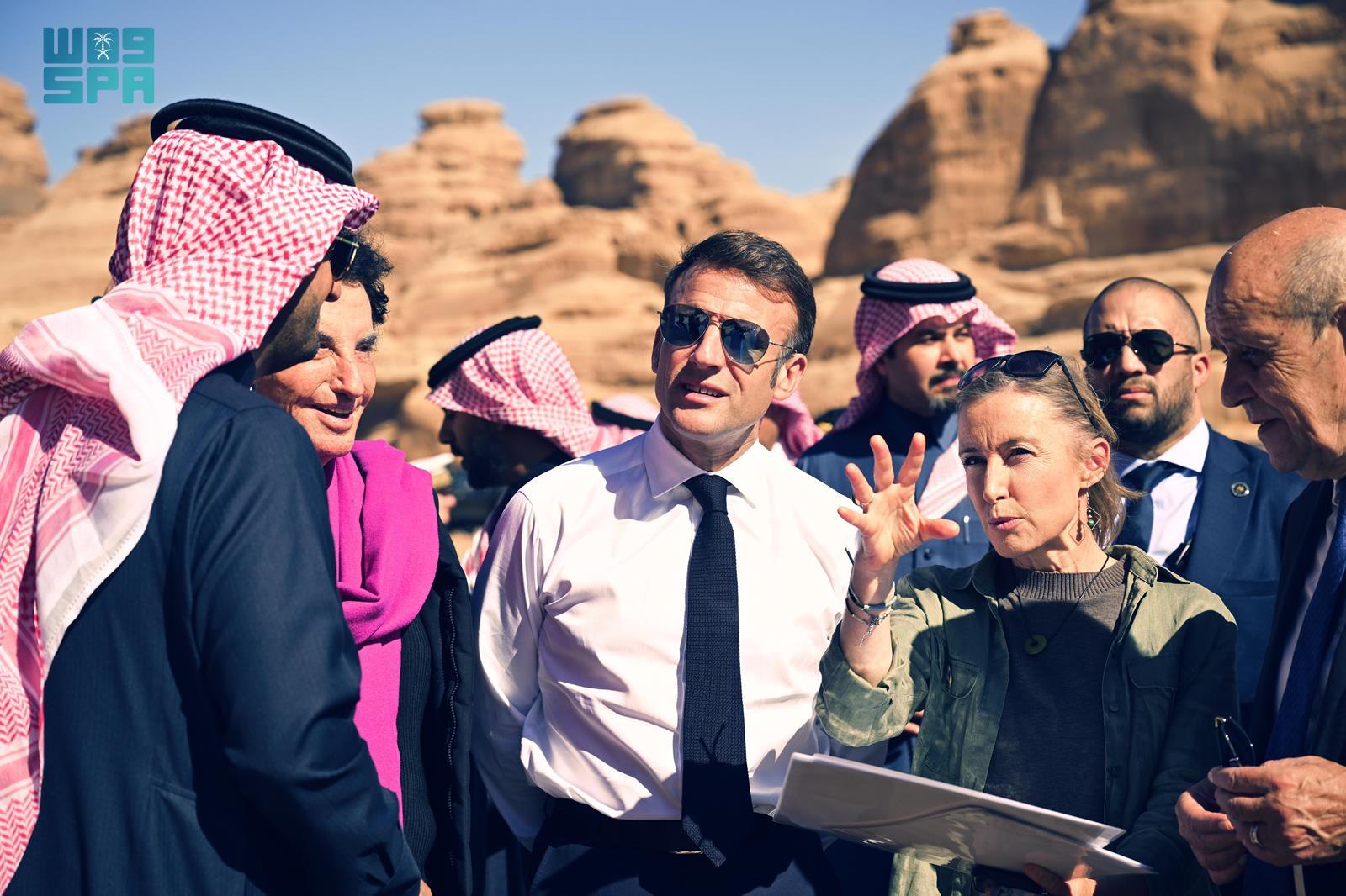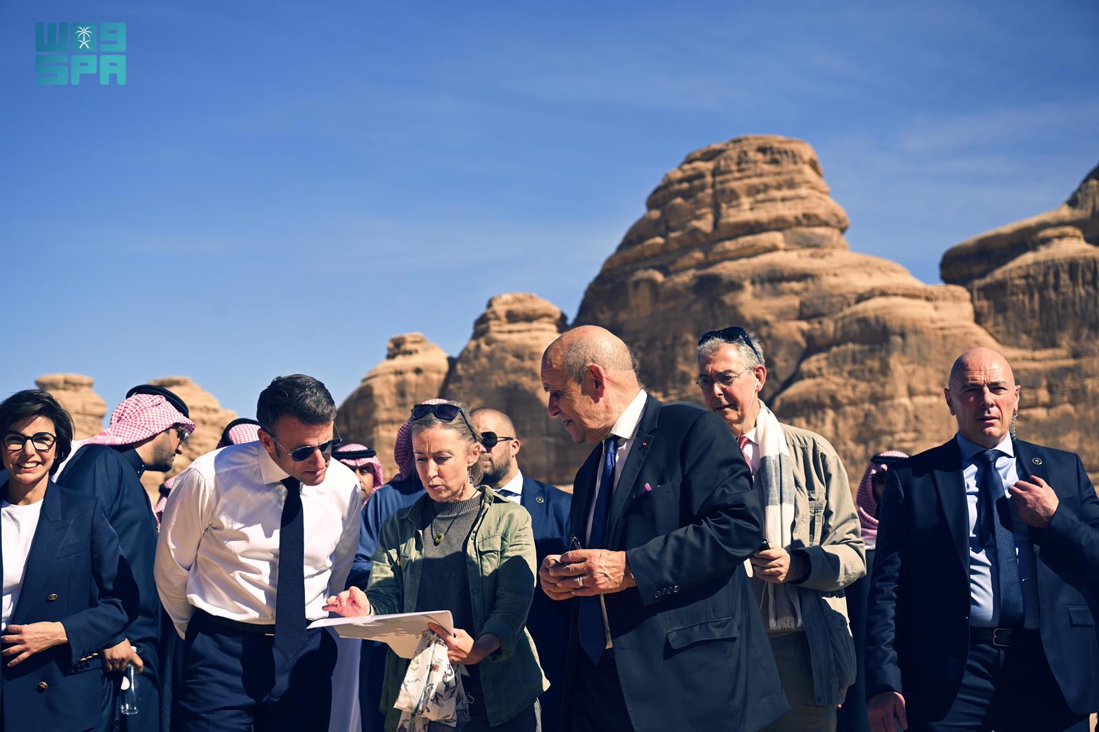 رافق فخامة الرئيس الفرنسي خلال زيارته للعلا وفد ضمّ وزراء ومسؤولين من بينهم وزير الخارجية الفرنسي جان نويل بارو، ووزير القوات المسلحة سيباستيان ليكورنو، ووزيرة الثقافة الفرنسية رشيدة داتي، ورئيس الوكالة الفرنسية لتطوير العُلا جين إيف لودريان, وتضمنت الزيارة جولة في أول موقع للتراث العالمي لليونسكو في المملكة العربية السعودية، الحجر، ومعالم ثقافية أخرى.