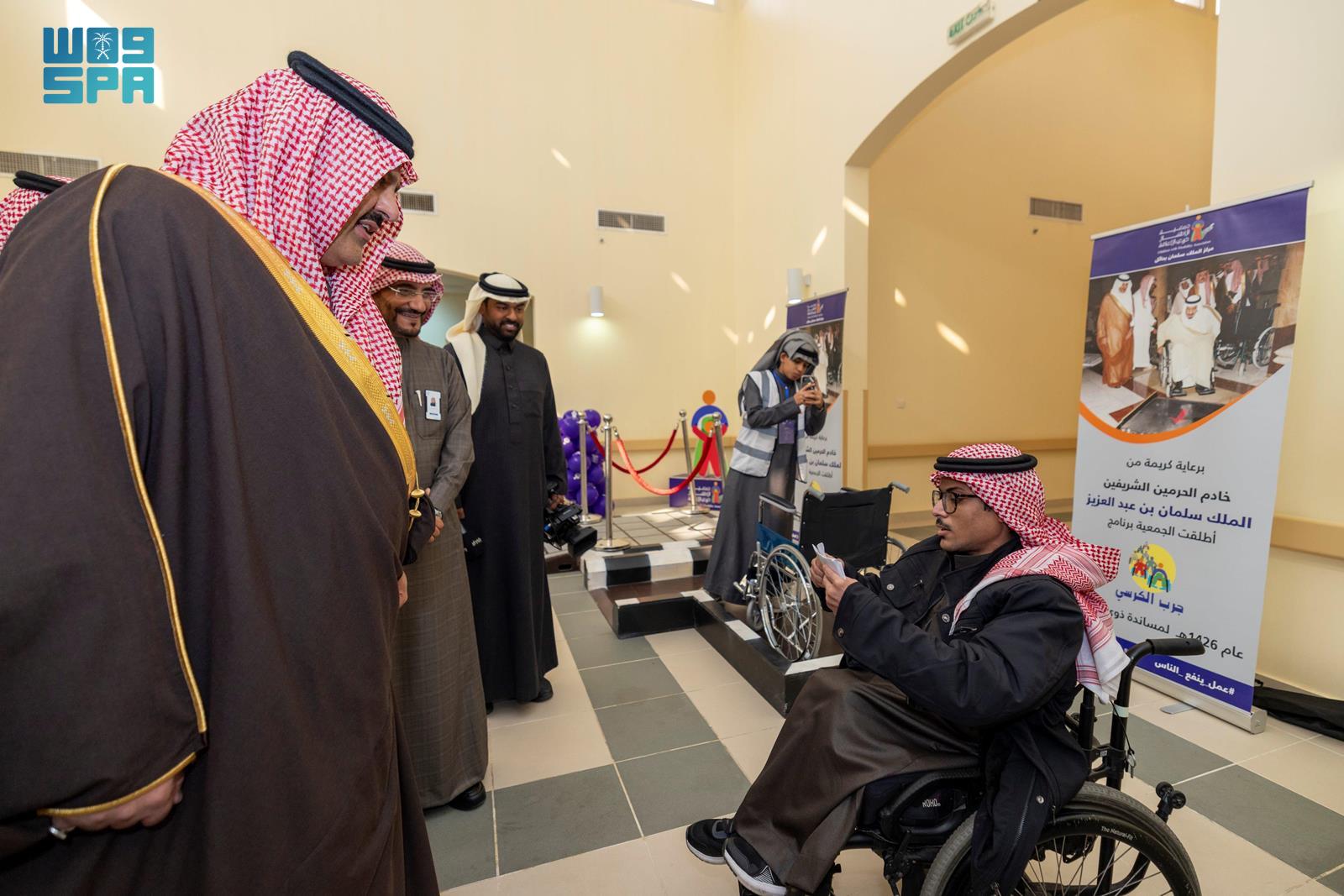 وفور وصول سموه افتتح الصالة الترفيهية للأطفال ذوي الإعاقة، وتجول فيها واطلع على محتوياتها والفعاليات المقامة فيها، وتجول في قاعة العلاج الطبيعي وتجربة الكرسي وأركان الجهات المشاركة، ثم أطلق “مبادرة سارة وأصدقائها”، التي تهدف إلى تفعيل دور الجهات والداعمين لتقديم خدمات علاجية لـ 32 طفلًا من ذوي الإعاقة، وأعلن رجل الأعمال فايز بن حمود المعجل عن تكفله بـ15 حالة من تلك الحالات.