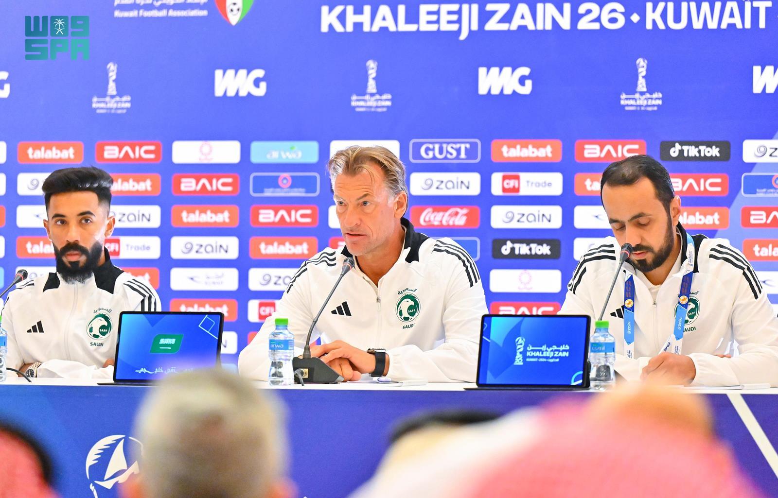 أقام مدير المنتخب السعودي إيرفي رينارد مؤتمر صحفي بشأن استعدادات المنتخب لمباراته ضد اليمن في كأس الخليج الـ26. شدد على أهمية التركيز والعمل الجاد لاستعادة الثقة وتحقيق النتائج الإيجابية. أكد على الطموح وأن الهدف هو التأهل لنصف النهائي. شجع الجماهير على عدم الاستسلام والعمل بجدية. أشاد بأداء اللاعبين وأعرب عن تفاؤله لمباراة اليمن. من جهته، وصف مدرب المنتخب اليمني المباراة بتحدي كبير وأكد على قوة المنتخب السعودي. أعرب عن أمله في تحقيق نتائج إيجابية واستمرار الأداء الجيد أمام المنتخبات القوية.