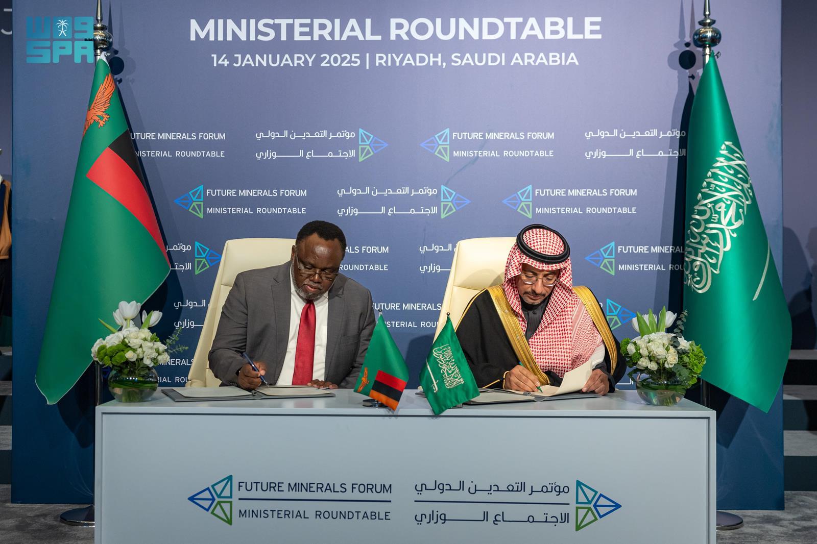 وقد وقَّع الاتفاقيات ومذكرات التفاهم، من الجانب السعودي، معالي وزير الصناعة والثروة المعدنية، الأستاذ بندر بن إبراهيم الخريف، ومعالي نائب الوزير لشؤون التعدين، المهندس خالد بن صالح المديفر، فيما وقعها من جانب الدول الأخرى كل من وزير الطاقة والموارد الطبيعية في جمهورية جيبوتي، ووزير الطاقة والثروة المعدنية في المملكة الأردنية الهاشمية، ووزير الأعمال والتجارة في المملكة المتحدة لبريطانيا العظمى وأيرلندا الشمالية، ووزير المناجم وتنمية المعادن في جمهورية زامبيا؛ إضافة إلى توقيع مذكرة تفاهم مع وزارة المالية في جمهورية النمسا الاتحادية، ووزارات الاقتصاد والمالية والسيادة الصناعية والرقمية في الجمهورية الفرنسية.