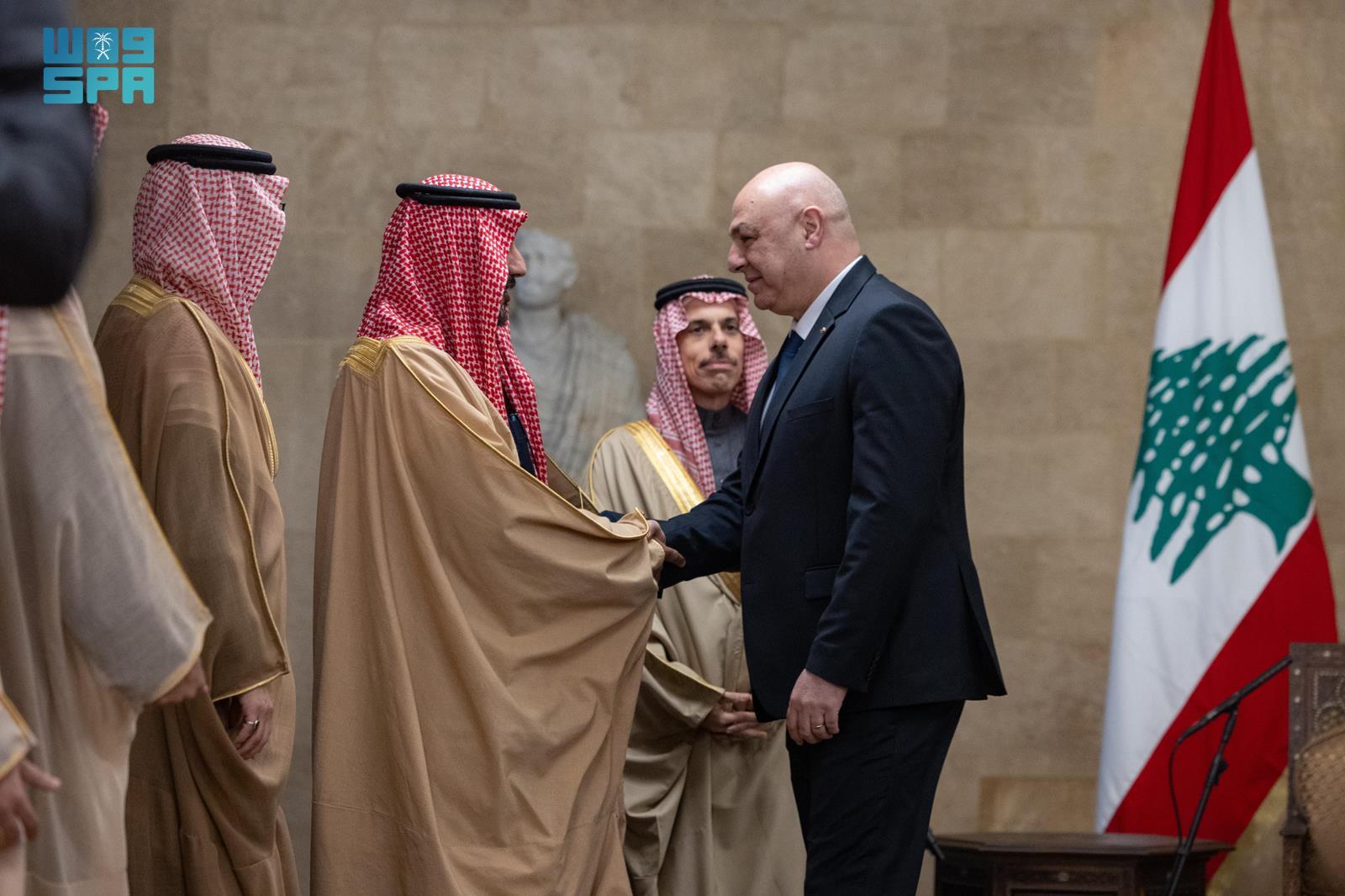 استقبل فخامة الرئيس جوزيف عون رئيس الجمهورية اللبنانية، اليوم، صاحب السمو الأمير فيصل بن فرحان بن عبدالله وزير الخارجية، في قصر بعبدا بالعاصمة اللبنانية بيروت.