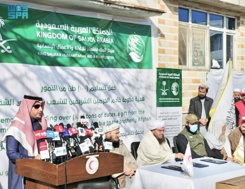 قدّم مركز الملك سلمان للإغاثة والأعمال الإنسانية هدية تتضمن 100 طن من التمور لجمهورية أفغانستان الإسلامية. تم تسليم المساعدات من قبل سفير المملكة لدى أفغانستان للقائم بأعمال جمعية الهلال الأحمر الأفغاني. الهدية جزء من الدور الإنساني للمملكة من خلال مركز الملك سلمان لدعم الدول الشقيقة والصديقة.
