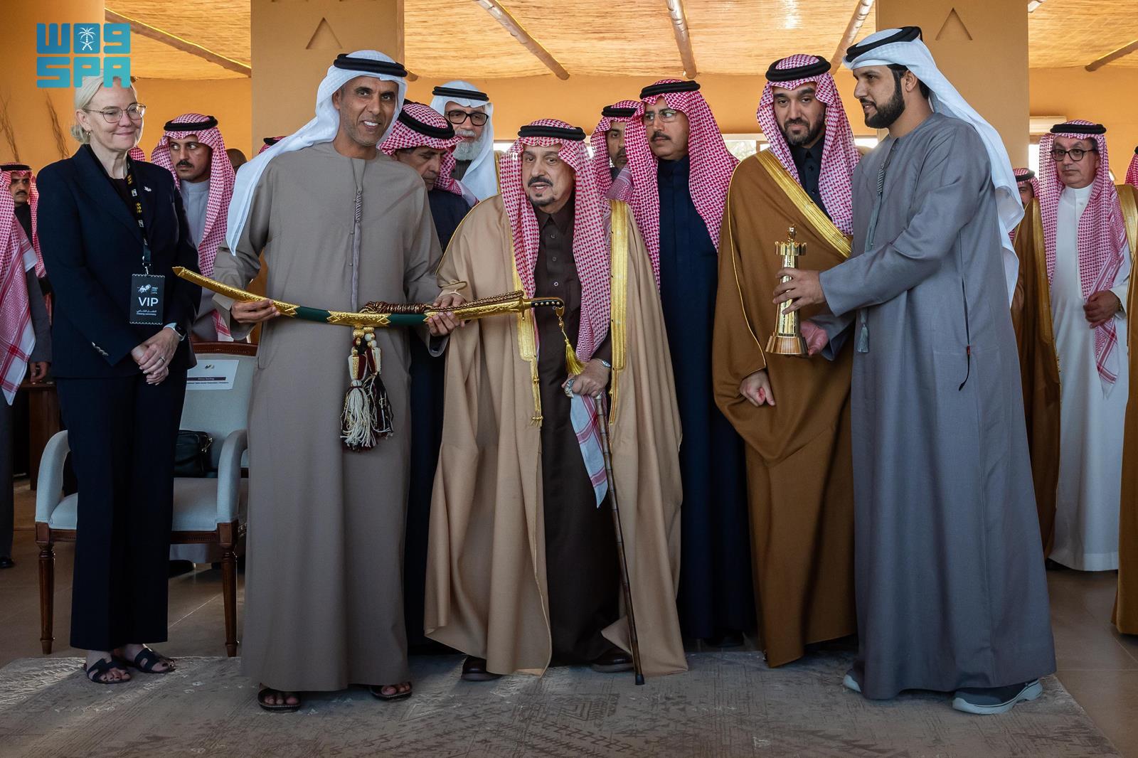 كما توَّج سموه، المالك السعودي عايض رفعان القحطاني بـ”سيف السعودية” عقب نجاحه بجمع 163 نقطة، وحصل على مبلغ ثلاثة ملايين ريال، كما تُوج سموه مالك الهجن القطري جابر سالم المري بالمركز الثاني، وحصل على مبلغ مليون ريال، وتُوج سموه المالك الإماراتي حمد نهيان العامري بالمركز الثالث وحصل على مبلغ 500 ألف ريال.