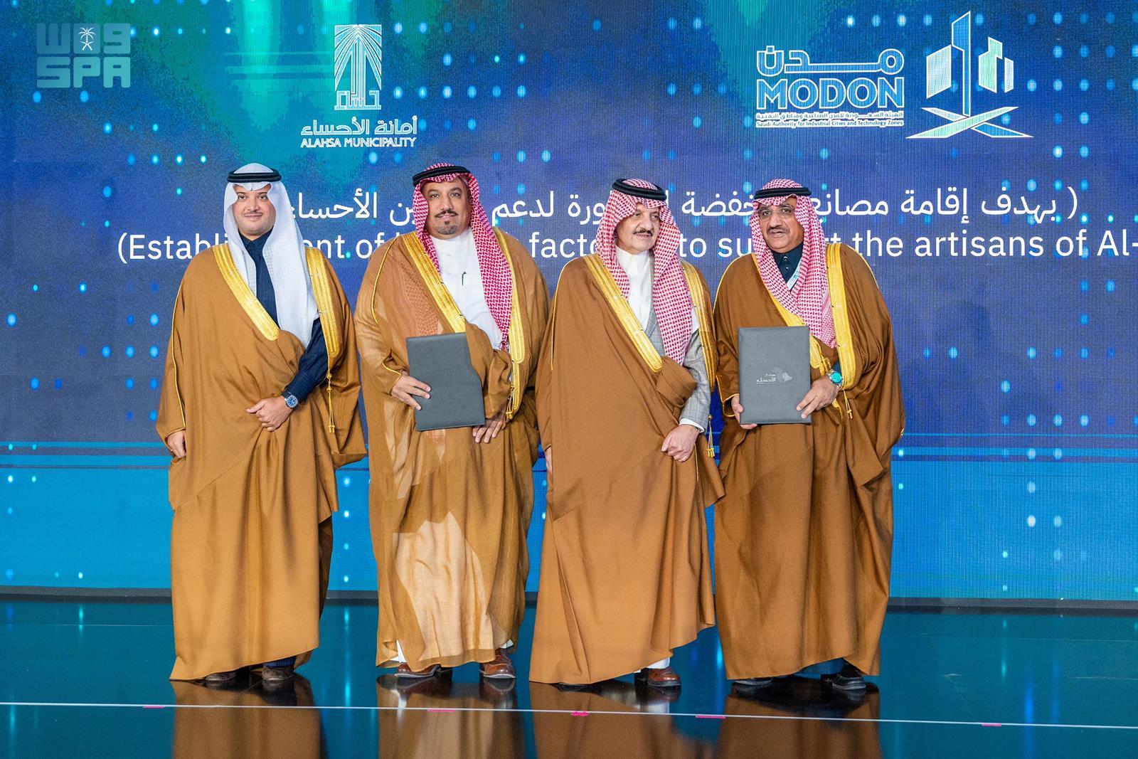 وشهد سمو أمير الشرقية مراسم توقيع اتفاقيات تعاون، الأولى “دعم جذب الاستثمارات القائمة على الإبداع والابتكار في الأحساء” بين وزارة الاستثمار ومركز الأمير أحمد بن فهد بن سلمان لتطوير الأعمال (سنا) بغرفة الأحساء، والثانية “برنامج إطلاق الحاضنة الصناعية وتمكين رواد الأعمال الصناعيين” بين جامعة الملك فيصل وصندوق التنمية الصناعية السعودي، والثالثة “تعزيز الاستثمار في البيئة والتنمية المستدامة للغطاء النباتي في الأحساء” بين هيئة تطوير الأحساء والمركز الوطني لتنمية الغطاء النباتي ومكافحة التصحر، والرابعة “إقامة مصانع منخفضة الخطورة” بين الهيئة السعودية للمدن الصناعية ومناطق التقنية (مدن) وأمانة الأحساء.