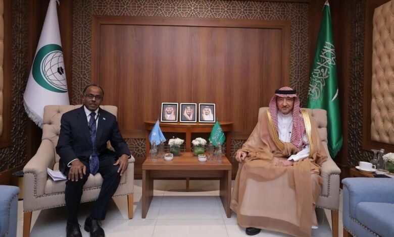 التقى معالي نائب وزير الخارجية المهندس وليد بن عبدالكريم الخريجي، اليوم، وزير الدولة للشؤون الخارجية والتعاون الدولي بجمهورية الصومال الفيدرالية علي محمد عمر، وذلك على هامش الاجتماع الاستثنائي للجنة التنفيذية مفتوحة العضوية على مستوى وزراء خارجية الدول الأعضاء في منظمة التعاون الإسلامي لبحث قرارات الاحتلال الإسرائيلي المنعقد في جدة. وجرى خلال اللقاء استعراض العلاقات الثنائية بين البلدين، ومناقشة آخر المستجدات على الساحتين الإقليمية والدولية. حضر اللقاء مدير عام فرع وزارة الخارجية بمنطقة مكة المكرمة فريد بن سعد الشهري.