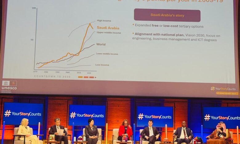 شارك وفد وزارة التعليم في الفعالية رفيعة المستوى لإطلاق "تقرير رصد التعليم العالمي 2026"، الذي خُصّص هذا العام لموضوع "الإتاحة والمساواة في التعليم"، وذلك بمقر منظمة اليونسكو بباريس. أبرز التقرير القفزة التاريخية التي حققتها المملكة في رفع معدلات الالتحاق بالتعليم العالي، إذ وصلت نسبة الالتحاق إلى 83.88%، مع تحقيق تكافؤ بين الجنسين بنسبة 1.01، كما ارتفعت نسبة الالتحاق بالتعليم الفني والمهني لتتجاوز 30% في عام 2024. كما حققت جامعة الملك فهد للبترول والمعادن المرتبة 67 عالميًا، ودخول جامعات سعودية ضمن قائمة أفضل 100 جامعة عالميًا في براءات الاختراع لعام 2025، كما تم تسليط الضوء على نجاح برنامج "الابتعاث الاستراتيجي" الذي يضم أكثر من 56 ألف مبتعث، إضافة إلى وصول عدد المستفيدين من خدمات "ادرس في السعودية" إلى أكثر من 200 ألف طالب دولي، مما يعزز مكانة المملكة كوجهة تعليمية عالمية جاذبة، إلى جانب الجهود الجارية لمنح التراخيص لجامعات دولية مرموقة لافتتاح فروع لها داخل المملكة، بما يسهم في تنويع الخيارات التعليمية ورفع مستوى التنافسية. يمضي قطاع التعليم بثقة نحو آفاق أوسع من التميز والابتكار، مؤكدا دوره المحوري في صناعة المستقبل وتحقيق التنمية المستدامة.